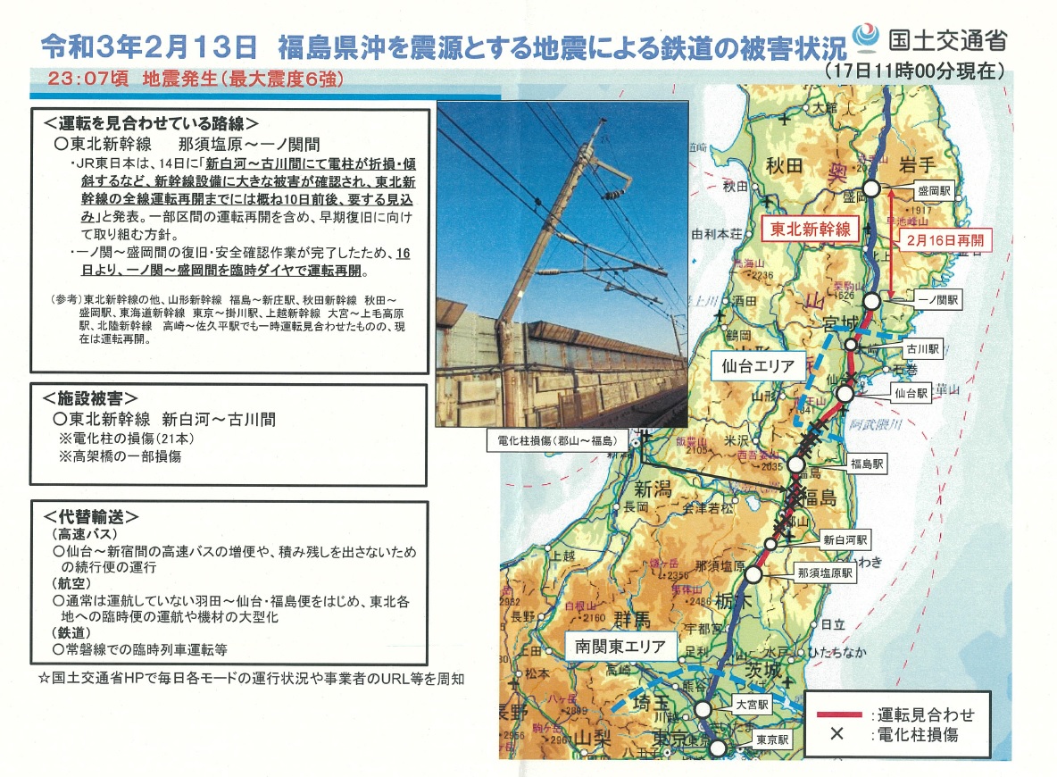東日本大震災を契機に、JR東日本では橋脚など高架の強靭化を進めてきました。今年2月に起きた福島県沖地震では、県内で広範囲にわたって橋脚などが破損し、東北新幹線の運行停止や徐行などが行われました。地震後すぐに予算委員会で国土交通省に質問し確認したところ、破損が起きたのは大震災後順次強靭化を進めていた中でも未施工の箇所だったということですが、この地震を契機に、すべて解消することができました。