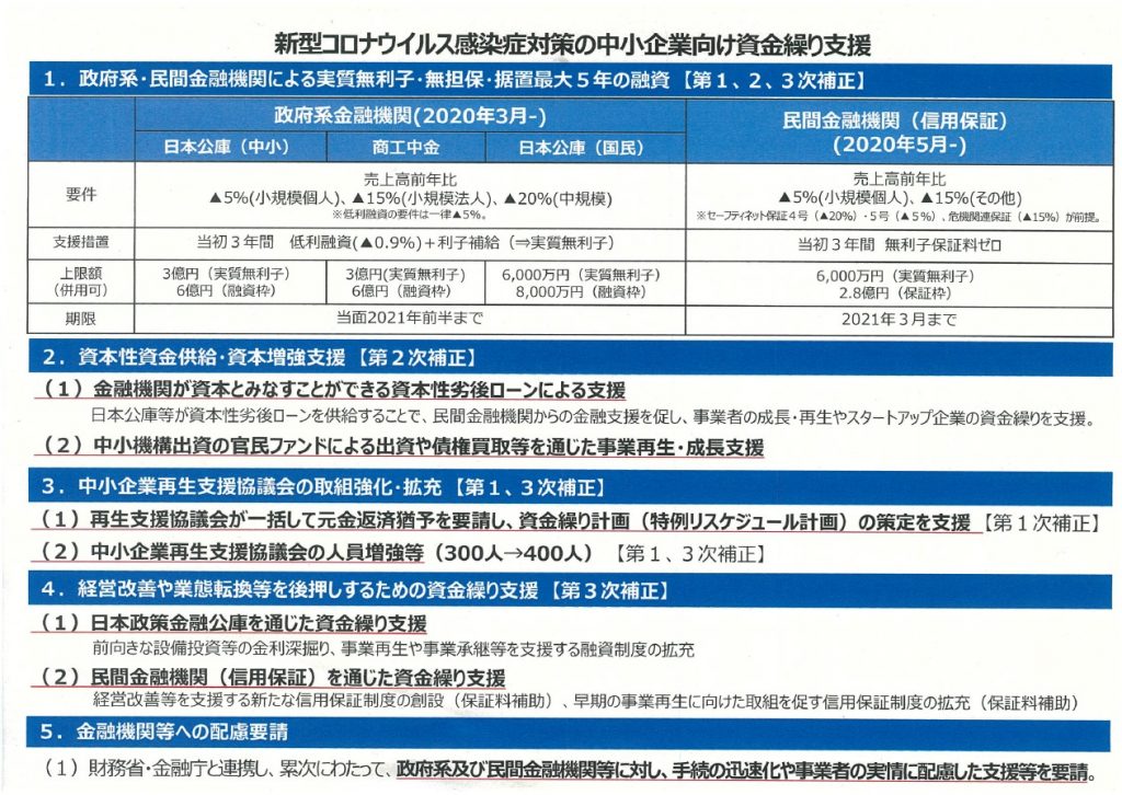 新型コロナウィルス感染症による景気の悪化に対応するため、経済産業省では特別給付金や、事業再構築補助金をはじめとした補助金や、日本政策金融公庫や商工中金、民間金融機関などを活用した融資制度で起業支援を行っています。この制度のご紹介のため、事務所でも独自のチラシを作成してご案内をしたほか、複雑な申請について事務的な補助を行うなど多くの皆様に支援が行き届くようにしました。