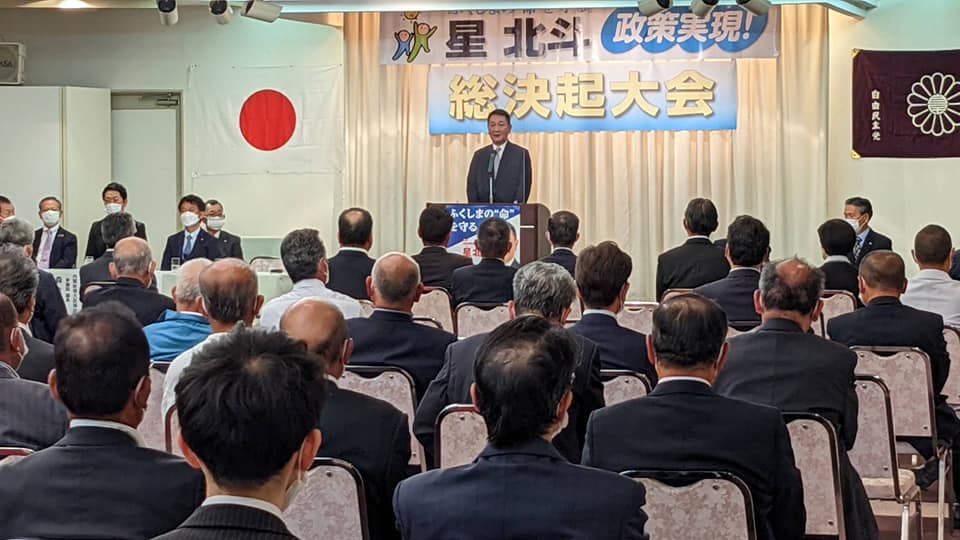 本日は棚倉町・新富家様にて110名を越える方々にお集まりいただいて、参議院議員候補予定者、星北斗氏の必勝に向けて東白川総決起大会が開催されました。