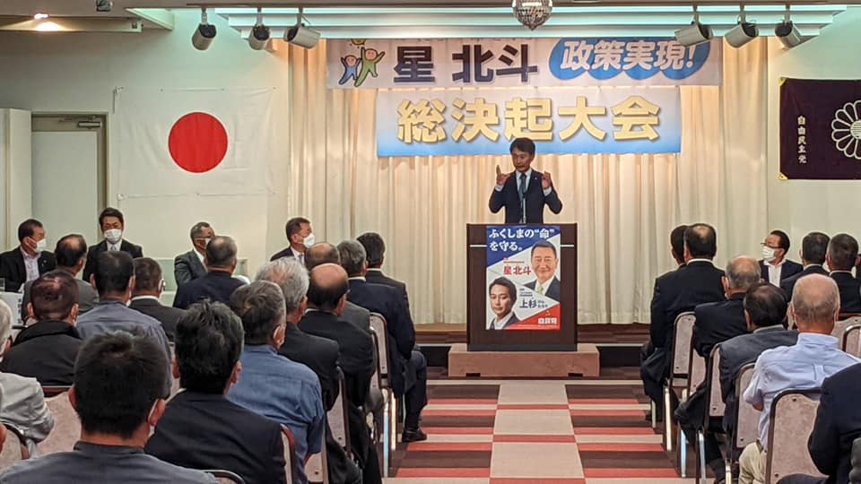 本日は棚倉町・新富家様にて110名を越える方々にお集まりいただいて、参議院議員候補予定者、星北斗氏の必勝に向けて東白川総決起大会が開催されました。