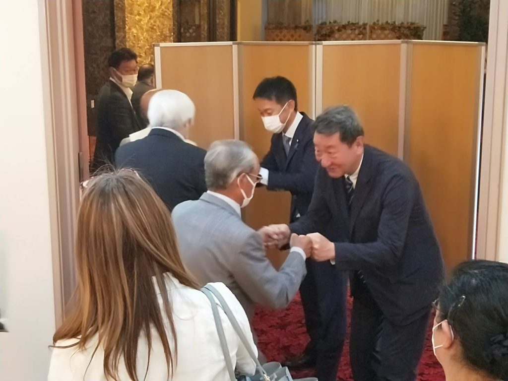 第3選挙区内から多くの支部長、後援会、友好団体の方々にお集まりいただき、今後の活動内容などを確認した後、星北斗氏の力強い決意表明があり、閉会後は上杉謙太郎代議士と星北斗氏が来場してくださった方々全員をグータッチでお見送りしました。(秘書 古川)