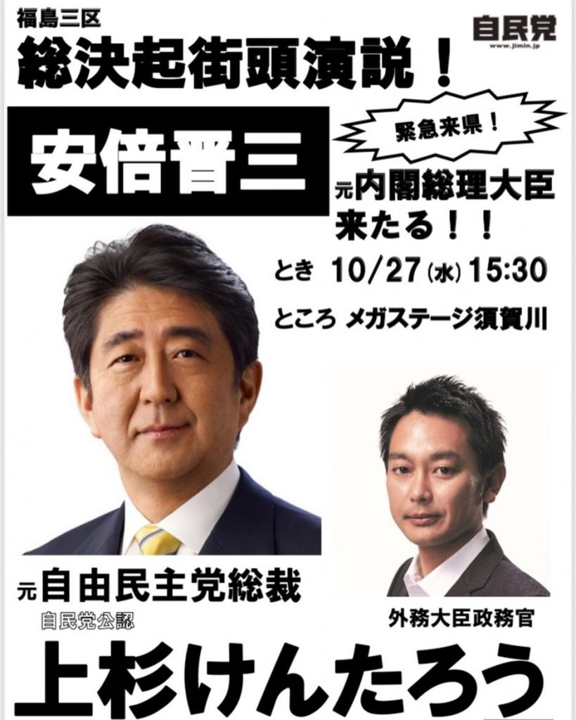 日本の内閣総理大臣として通算在任日数、歴代1位の安倍晋三元首相が応援に駆けつけて来てくださいます!