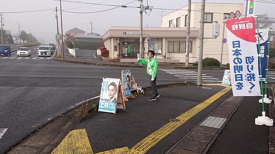 朝靄の中、清々しい朝です。車からのたくさんのご声援、ご期待に応えるべく、しっかり仕事をして参ります。