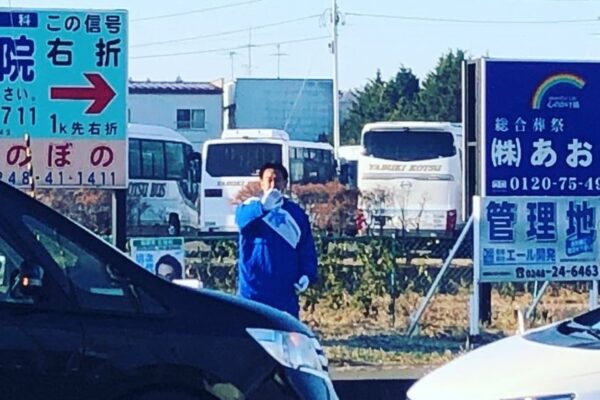 4号コナカさん前で辻立ち!白河は朝から雪☃️でした…初雪?