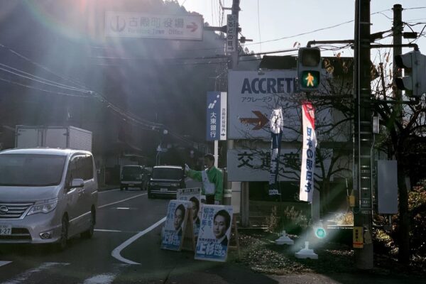 古殿町山上浪滝にて街頭演説会